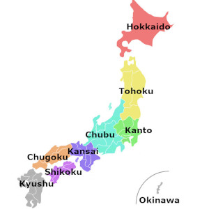 Japan can be broken down into nine regions—Hokkaido, Tohoku, Chubu, Kanto, Kansai, Chubu, Shikoku, Kyushu, and Okinawa. Most of the regions consist of several prefectures but two are single prefecture regions.
